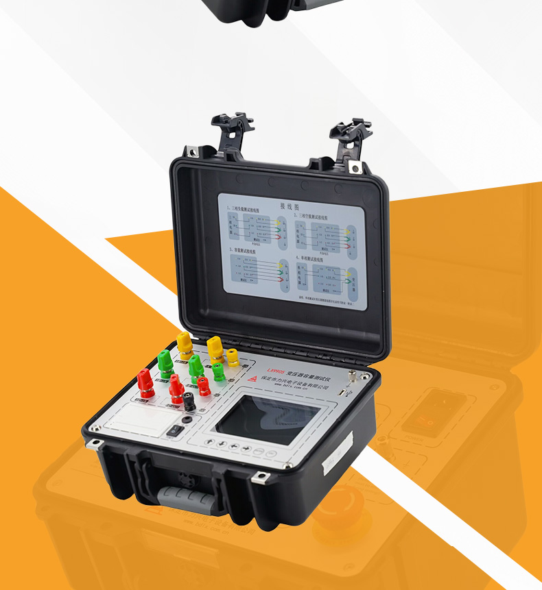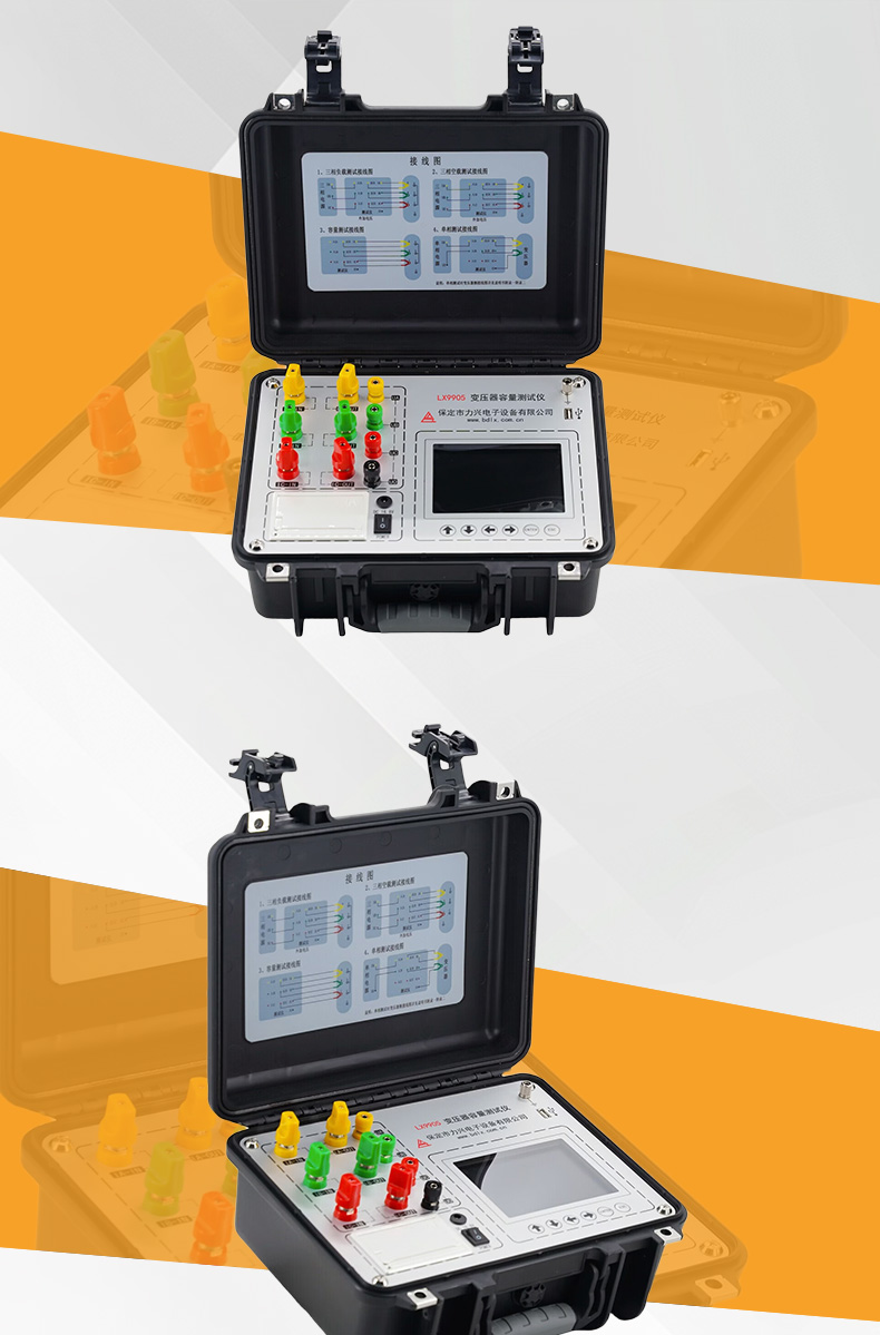 5、容量的测量:仪器内置可充电锂电池,本身可输出三相正弦波逆变电源,输出电压自动调节,具有软启、软停功能,无需任何外部电源可实现配电变压器容量的测量和型号的判断,同时显示变压器阻抗电压和折算到额定温度、额定电流下的负载损耗。